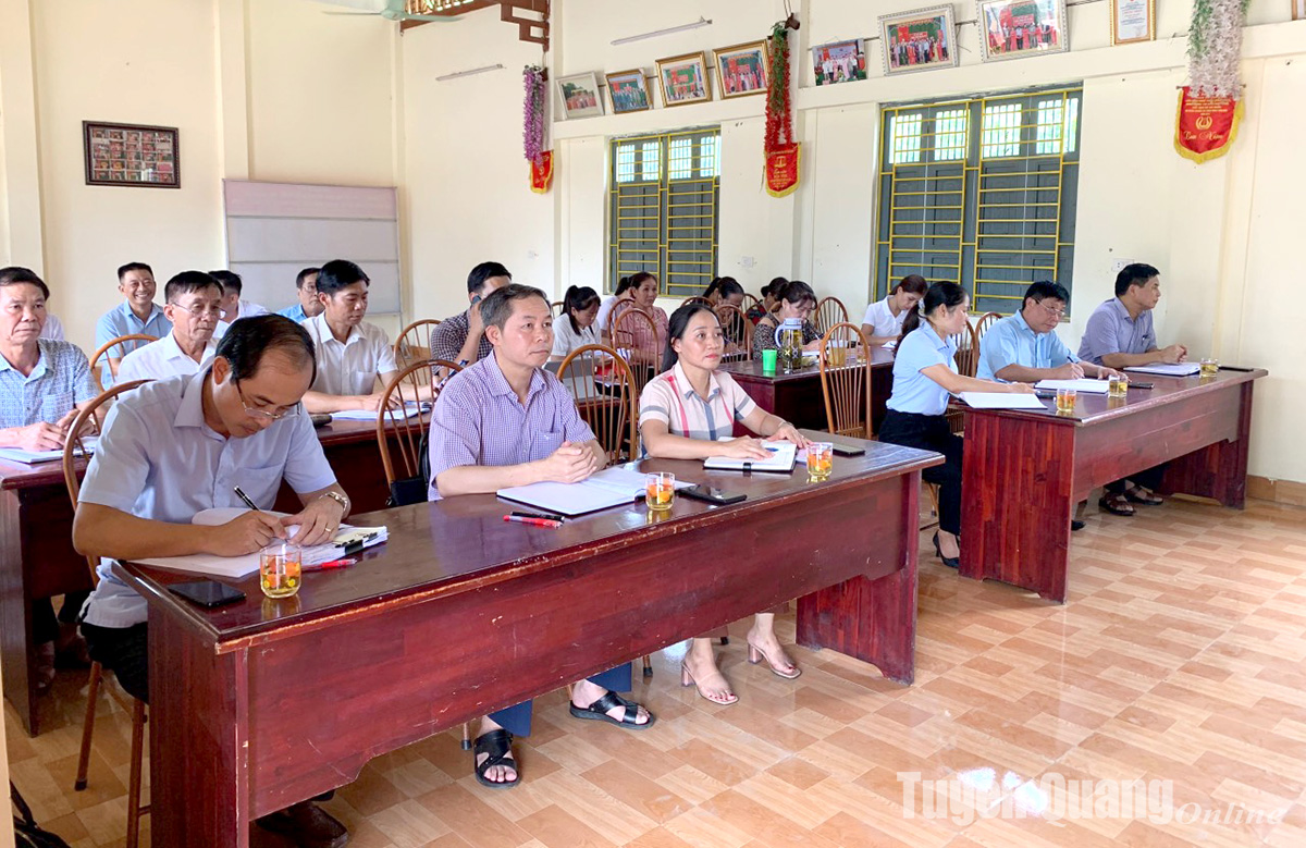 Lãnh đạo Huyện ủy Yên Sơn và cán bộ xã Thái Bình dự sinh hoạt chi bộ tại thôn 4.