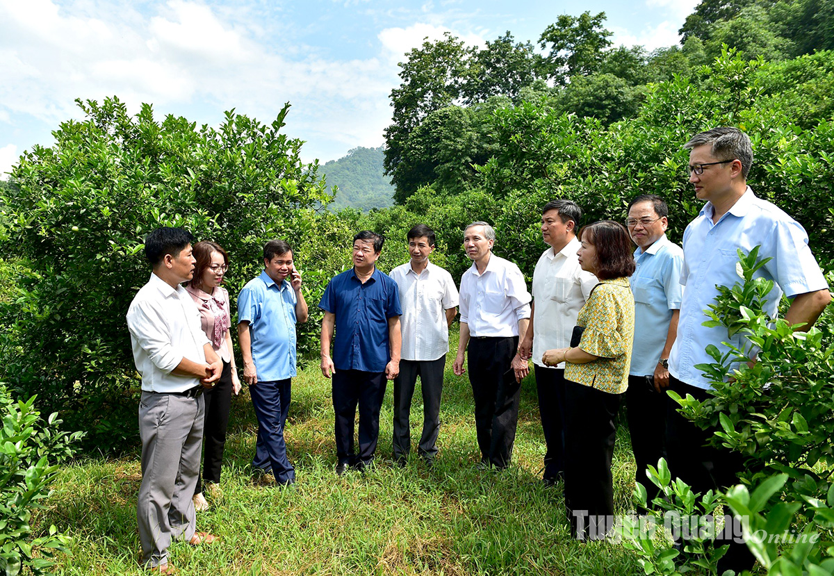 Cán bộ ngành Tuyên giáo tỉnh, huyện tham quan một số mô hình kinh tế tại huyện Chiêm Hóa. Ảnh: Thanh trà