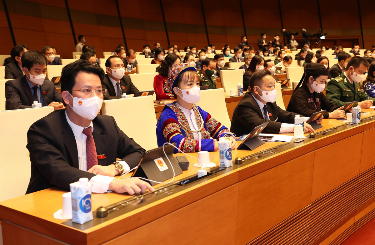 Các đại biểu Quốc hội biểu quyết thông qua luật tại Kỳ họp thứ hai, Quốc hội khoá XV_Ảnh: TTXVN