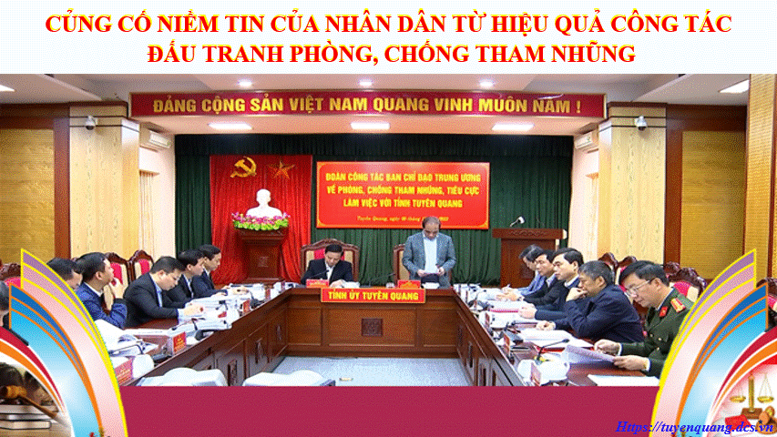 Hiệu quả của công tác phòng, chống tham nhũng, tiêu cực trên địa bàn cả nước nói chung, tỉnh Tuyên Quang nói riêng đã tạo niềm tin của Nhân dân với Đảng, Nhà nước, làm thất bại mọi âm mưu, thủ đoạn của các thế lực thù địch chống phá sự nghiệp cách mạng của nhân dân ta./.