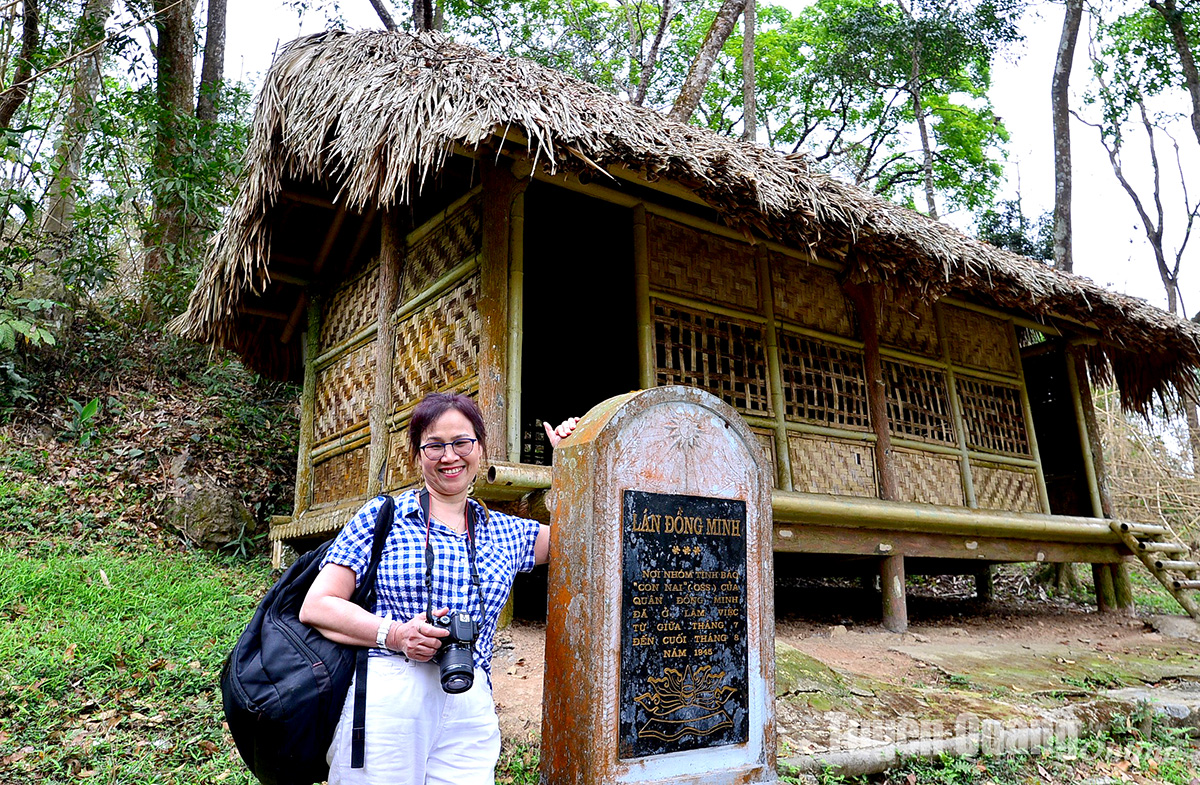 Thạc sỹ Ngôn ngữ học, Thạc sỹ Hoa Kỳ học Nguyễn Thị Minh Phương hiện giảng dạy tiếng Việt tại Trường Đại học Tổng hợp Massachusetts, thành phố Boston, Mỹ thăm lán Đồng Minh thuộc Khu Di tích lịch sử Quốc gia đặc biệt Tân Trào năm 2023.