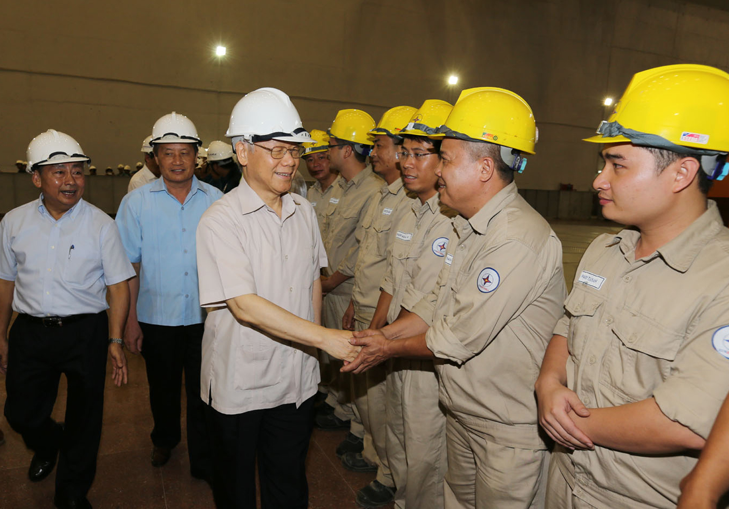 Tổng Bí thư Nguyễn Phú Trọng với cán bộ, kỹ sư và công nhân Nhà máy Thủy điện Lai Châu_Ảnh: TTXVN