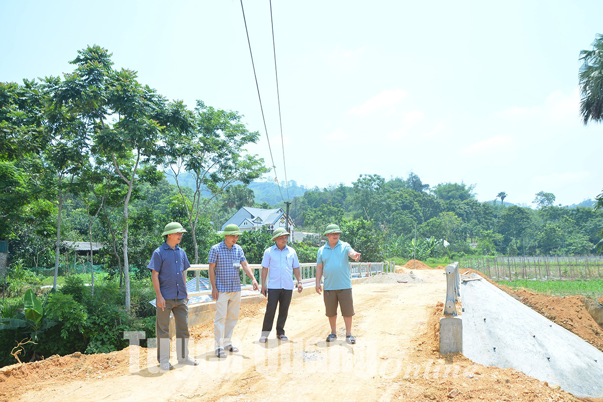 Lãnh đạo UBND xã Xuân Vân (Yên Sơn) kiểm tra việc xây dựng cầu trên đường giao thông nông thôn trên địa bàn xã.
