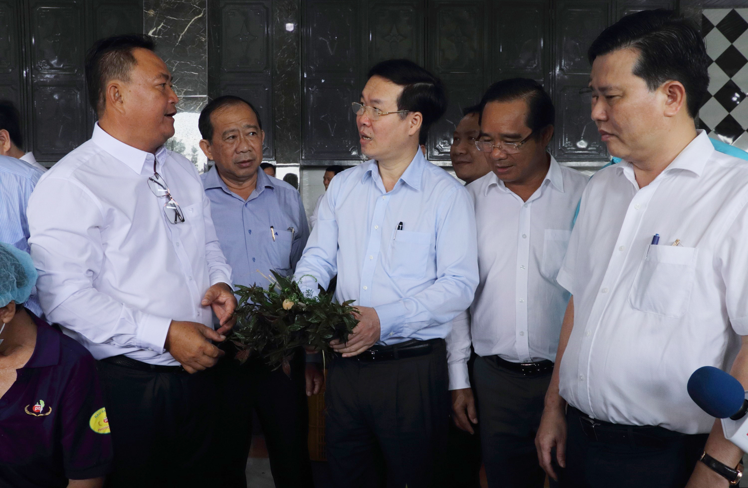 Ủy viên Bộ Chính trị, Thường trực Ban Bí thư, Võ Văn Thưởng thăm và làm việc với Ban thường vụ Tỉnh ủy Long An về tình hình thực hiện Nghị quyết Đại hội XIII của Đảng và Nghị quyết Đại hội XI Đảng bộ tỉnh Long An nhiệm kỳ 2020 - 202 (Trong ảnh: Ủy viên Bộ Chính trị, Thường trực Ban Bí thư Võ Văn Thưởng thăm Hợp tác xã rau an toàn Phước Thịnh tại xã Phước Hậu, huyện Cần Giuộc, tỉnh Long An)_Ảnh: TTXVN