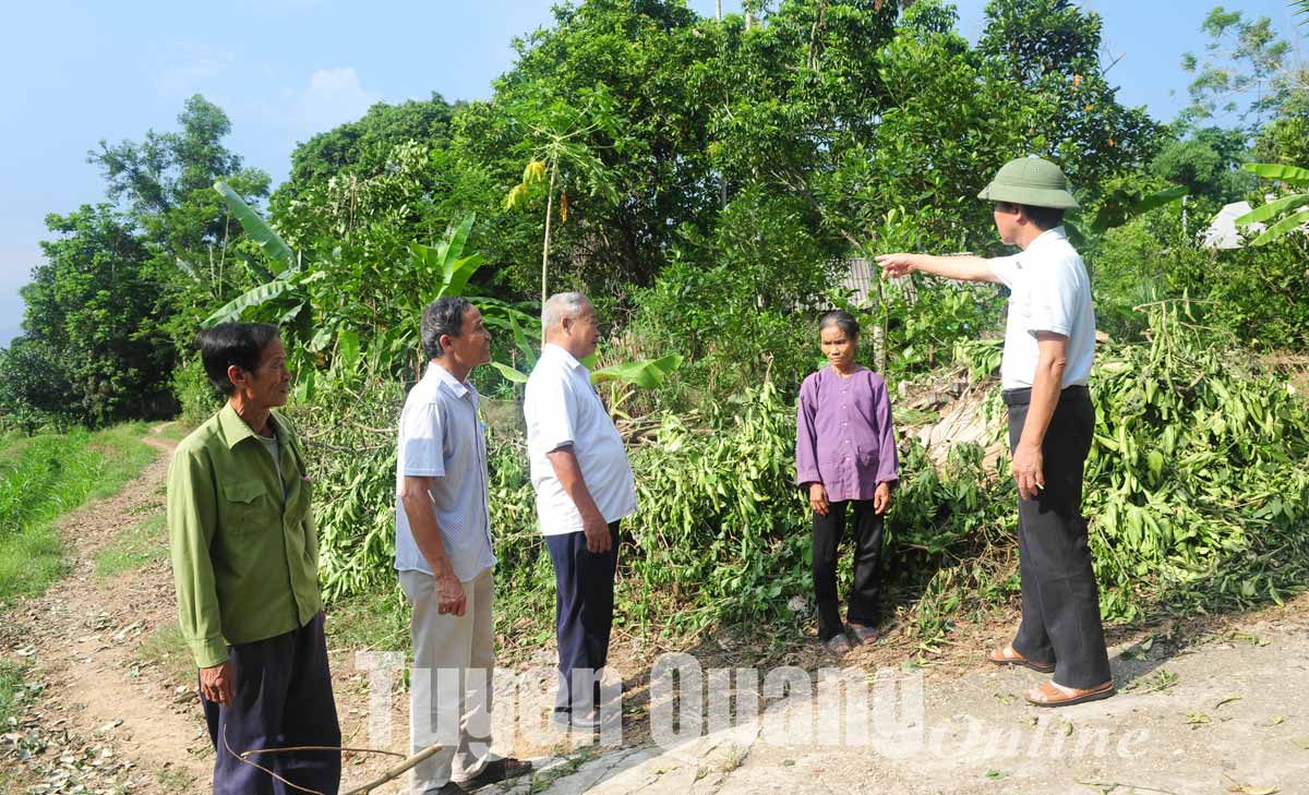 Lãnh đạo chi bộ tổ dân phố Đồng Bàng, thị trấn Tân Yên (Hàm Yên) vận động người dân hiến đất làm đường.