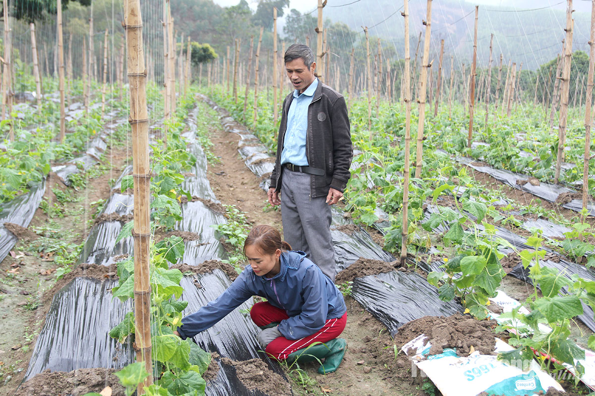 Bí thư chi bộ, trưởng thôn Lẹm, xã Kháng Nhật (Sơn Dương) nắm bắt tình hình sản xuất của người dân.