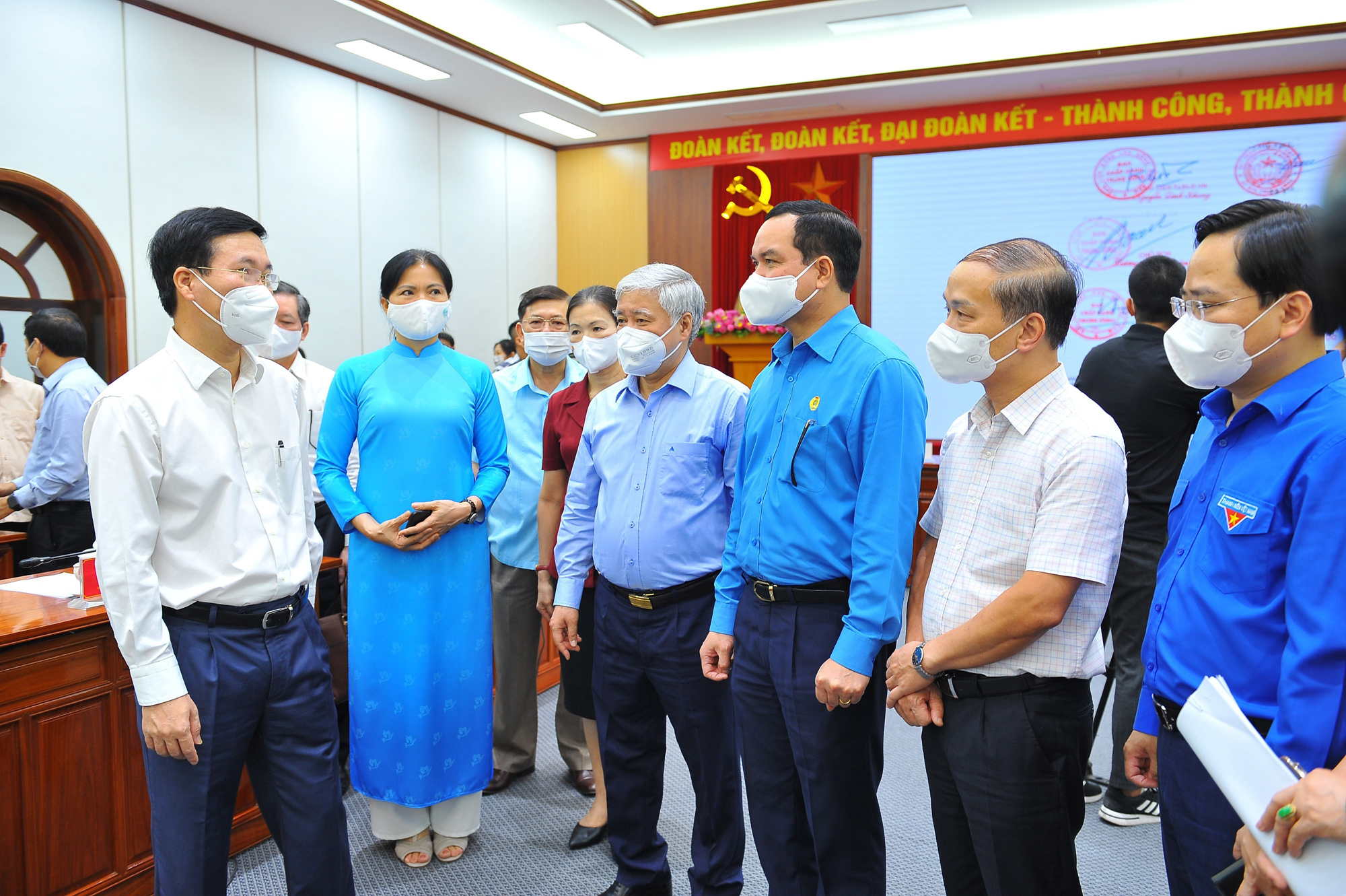 Công tác tổ chức xây dựng Đảng phải làm tốt việc tham mưu sắp xếp tổ chức bộ máy của hệ thống chính trị và nâng cao hiệu lực, hiệu quả hoạt động, xây dựng đội ngũ cán bộ đủ điều kiện, tiêu chuẩn cho Đảng (Trong ảnh: Ủy viên Bộ Chính trị, Thường trực Ban Bí thư Võ Văn Thưởng cùng lãnh đạo Mặt trận Tổ quốc, các ban, bộ, ngành tại Chương trình “Triệu phần quà Đại đoàn kết tiếp sức đồng bào miền Nam vượt qua đại dịch COVID-19”) _Ảnh: TTXVN