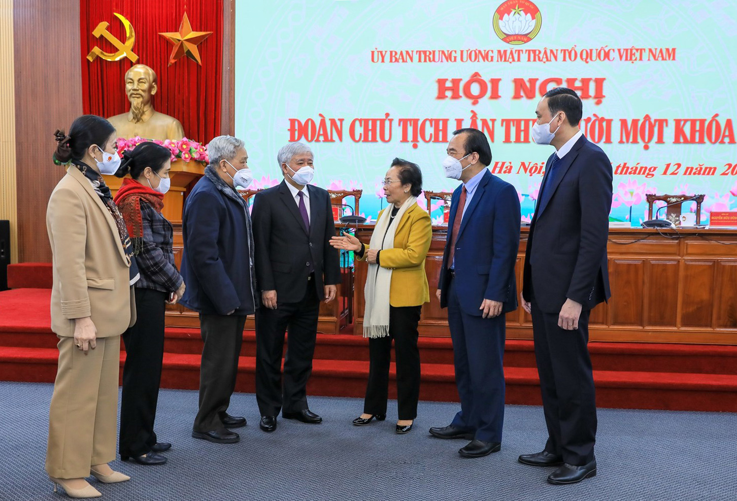 Đồng chí Đỗ Văn Chiến, Bí thư Trung ương Đảng, Chủ tịch Ủy ban Trung ương Mặt trận Tổ quốc Việt Nam trao đổi với các đại biểu tại Hội nghị Đoàn Chủ tịch lần thứ 11 (khóa IX)_Nguồn: mattran.org.vn