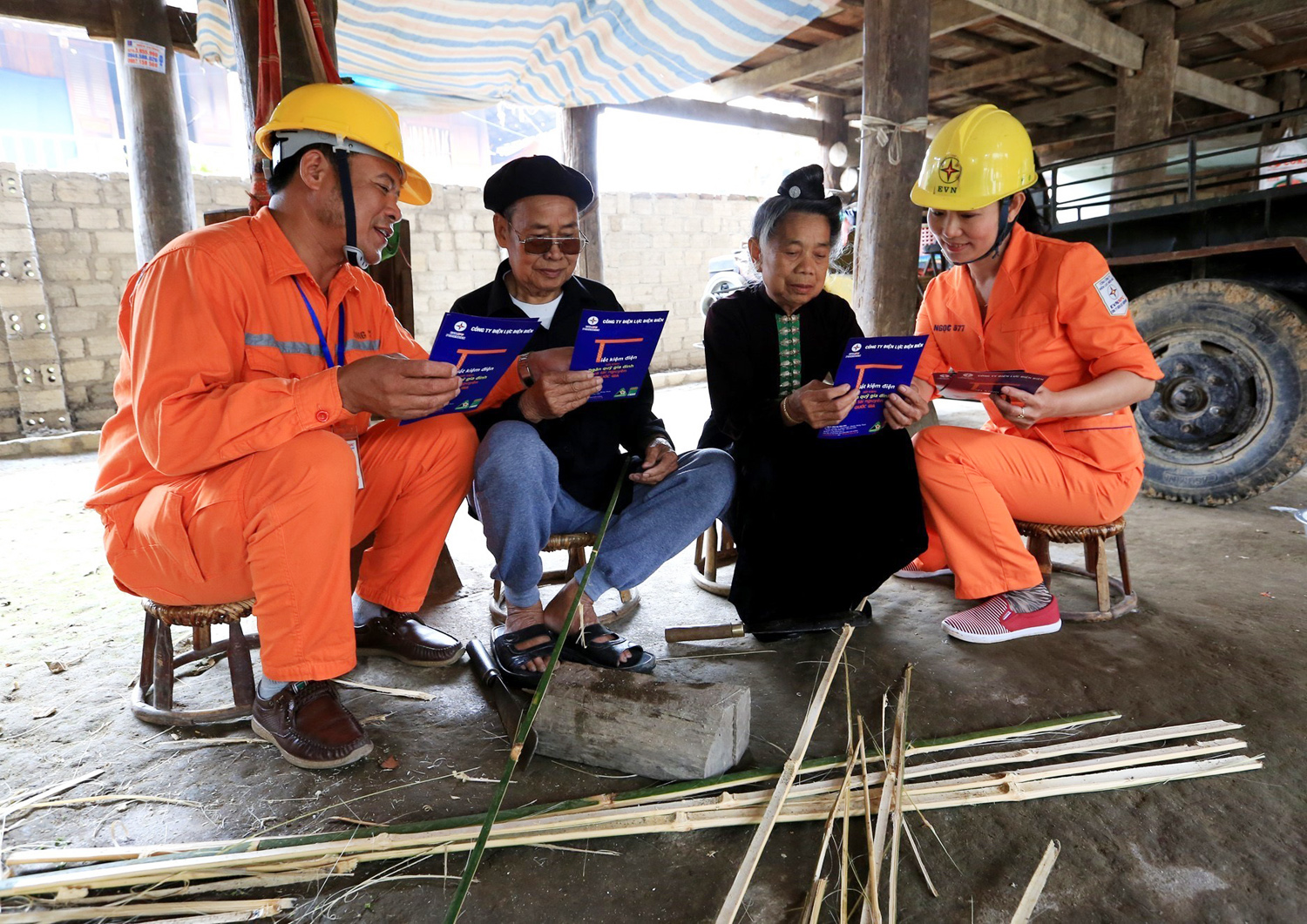 Cán bộ, công nhân ngành điện hướng dẫn đồng bào dân tộc thiểu số sử dụng điện an toàn, hiệu quả_Ảnh: TTXVN