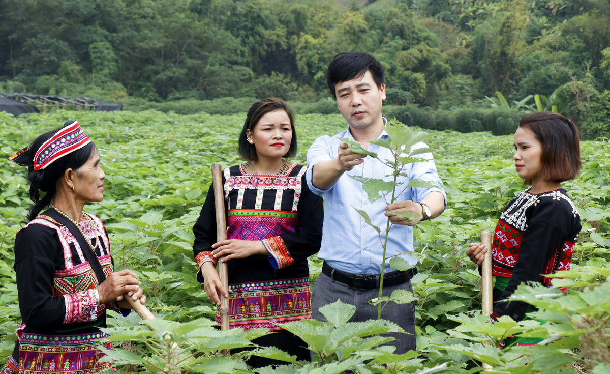 Cán bộ cơ sở hướng dẫn đồng bào canh tác nông nghiệp, phát triển kinh tế, vươn lên thoát nghèo_Ảnh: TTXVN