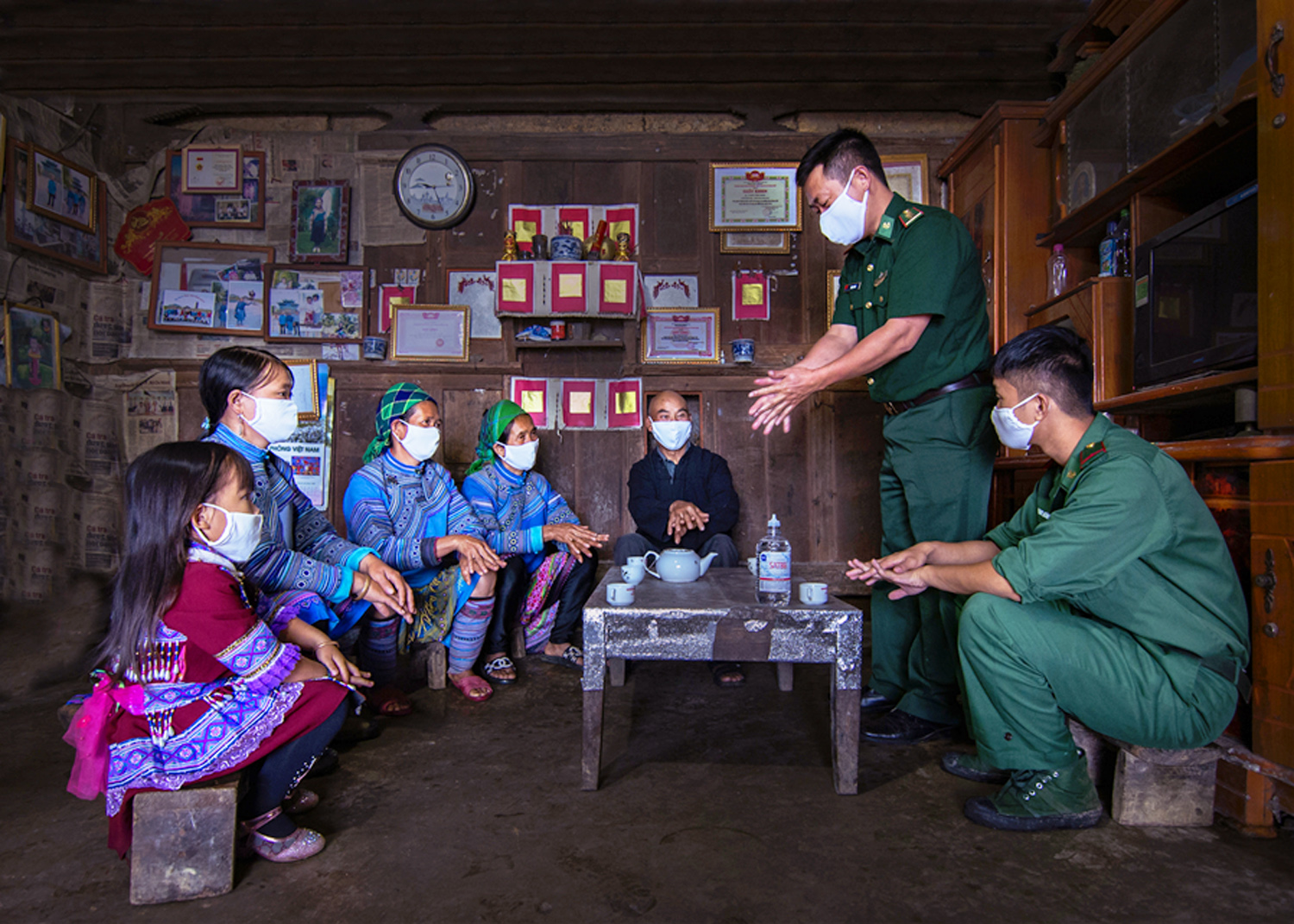 Cán bộ, chiến sĩ biên phòng hướng dẫn đồng bào phòng, chống dịch COVID-19_Ảnh: S.T