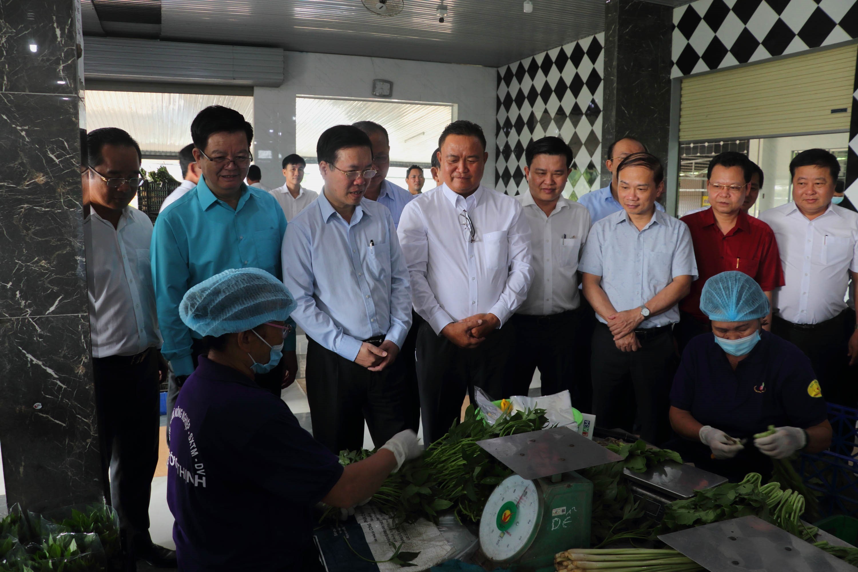 Ủy viên Bộ Chính trị, Thường trực Ban Bí thư Võ Văn Thưởng làm việc với Ban thường vụ Tỉnh ủy Long An về tình hình thực hiện Nghị quyết Đại hội XIII của Đảng và Nghị quyết Đại hội Đảng bộ tỉnh Long An lần thứ XI, nhiệm kỳ 2020 - 2025 (Trong ảnh: Đồng chí Võ Văn Thưởng thăm Hợp tác xã rau an toàn Phước Thịnh tại xã Phước Hậu, huyện Cần Giuộc, tỉnh Long An)_Ảnh: TTXVN