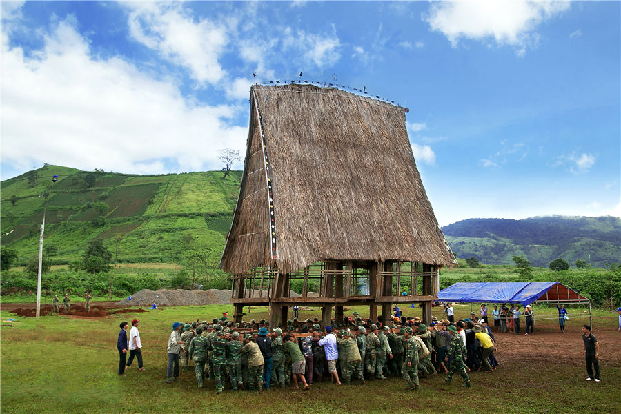 Bộ đội giúp đồng bào Tây Nguyên chuyển nhà (ảnh: Nguyễn Linh Vinh Quốc)_Nguồn: nhiepanhvadoisong.vn