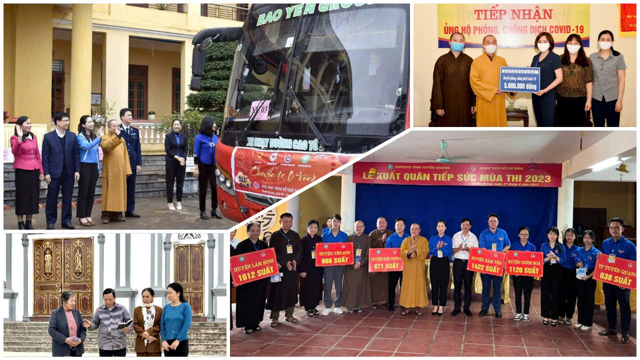 Nhiều tín đồ, phật tử, chức sắc, chức việc, người có uy tín trong tôn giáo đã phối hợp với lực lượng Công an và chính quyền địa phương tuyên truyền, vận động đấu tranh, xóa bỏ hoàn toàn 12 loại hình “hiện tượng, tín ngưỡng tôn giáo mới” hoạt động trái pháp luật, góp phần xây dựng tỉnh Tuyên Quang không có loại hình hiện tượng, tín ngưỡng tôn giáo mới hoạt động trái pháp luật. Phối hợp với đảng viên, cán bộ, công chức, chiến sỹ lực lượng vũ trang, cán bộ Mặt trận Tổ quốc và các tổ chức chính trị, xã hội cấp tỉnh, cấp huyện, cấp xã tham gia các hoạt động tại cơ sở, đã giúp các hộ nghèo, cận nghèo, hộ có hoàn cảnh khó khăn sửa nhà, làm nhà mới, hỗ trợ khắc phục hậu quả thiên tai, gió lốc; tham gia bảo vệ môi trường, chỉnh trang khuôn viên nhà văn hóa; trồng, chăm sóc tuyến đường hoa, cây xanh; làm đường bê tông, đắp hoàn mang đường bê tông; tham gia làm đường điện thắp sáng đường quê... trong đó, chú trọng thực hiện tại địa bàn các xã đặc biệt khó khăn, vùng sâu, vùng xa, vùng đồng bào dân tộc thiểu số. Ban Trị sự Giáo hội Phật giáo Việt Nam tỉnh phối hợp với Quỹ Thiện tâm Tập đoàn Vingroup tặng 1.140 xuất quà với tổng trị giá trên 600 triệu đồng cho hộ nghèo, gia đình chính sách; phối hợp tổ chức Chương trình “Chuyến xe 0 đồng” đưa 400 em học sinh Trường Phổ thông dân tộc nội trú tỉnh có hoàn cảnh khó khăn về quê đón tết Nguyên đán Giáp Thìn; phối hợp tổ chức Chương trình "Tiếp sức mùa thi" hàng năm với sự tham gia của nhiều phật tử cùng với đoàn viên thanh niên phục vụ suất ăn cho các thí sinh tại các điểm thi tốt nghiệp THPT. Phối hợp nhân rộng các mô hình, điển hình tiên tiến, như: “Họ giáo Yên Thịnh chung sức xây dựng nông thôn mới”, mô hình “Họ giáo bình yên không có tệ nạn xã hội”, “Điểm nhóm Tin lành tự quản về ANTT”, “Họ giáo không có tệ nạn xã hội”… Qua đó, hoạt động các tôn giáo, tình hình tín ngưỡng, tôn giáo trên địa bàn tỉnh cơ bản ổn định, sinh hoạt theo nội dung đăng ký, thông báo với chính quyền địa phương; góp phần đảm bảo ổn định tình hình, tăng cường khối đại đoàn kết toàn dân tộc, giữ vững an ninh chính trị, trật tự an toàn xã hội.