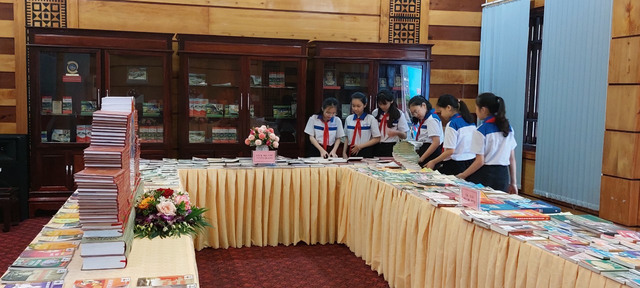 Học sinh Trường THCS Lê Quý Đôn (thành phố Tuyên Quang) tìm hiểu sách, báo, tư liệu về Cuộc đời và sự nghiệp của Chủ tịch Hồ Chí Minh