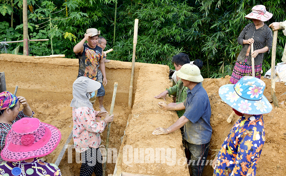 Đồng chí Triệu Văn Liều, Bí thư Chi bộ thôn Khuổi Củng sau khi đi họp trên xã về đã truyền đạt đến toàn thôn, nhân dân trong thôn ai cũng nhất trí cần khôi phục lại bản sắc nhà trình tường. Năm 2020, ông Sùng Mí Chính, người có uy tín trong cộng đồng người Mông ở Khuổi Củng xung phong làm chiếc nhà trình tường đầu tiên. Ngày đẹp trời cả thôn đến hộ đặt khuôn, nện đất rộn rã. Những mảng tường nối với nhau dày cứ thế mà cao dần. Thấy nhà ông Chính làm xong đẹp quá, năm 2021, hộ ông Sùng Seo Páo, Lý Tòn Pin, Giàng Seo Sỳ, Ma Seo Sếnh tiếp tục đăng ký làm nhà trình tường. Bí thư Chi bộ thôn Triệu Văn Liều khẳng định, còn rất nhiều hộ đăng ký khôi phục lại bản sắc nhà trình tường. Bởi du lịch cộng đồng cần cảnh quan, sự đồng lòng chung của toàn thôn. Thôn tin tưởng đây là chủ trương đúng của huyện, xã.