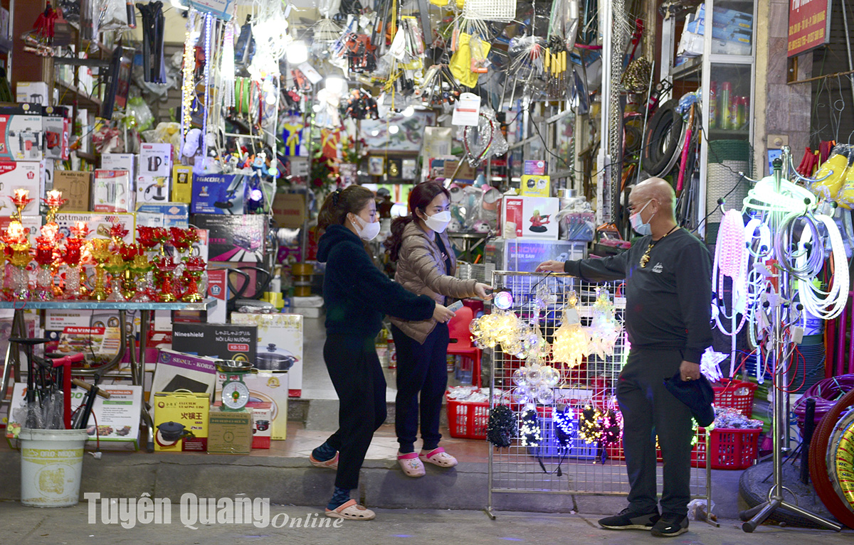 Khách đến cửa hàng đèn lồng, đồ trang trí nhà cửa.