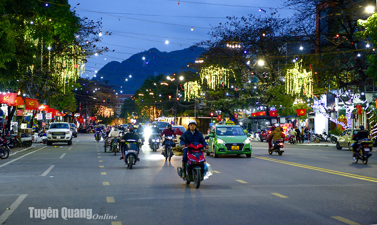 Thành phố Tuyên Quang trang hoàng đường phố lung linh sắc màu.
