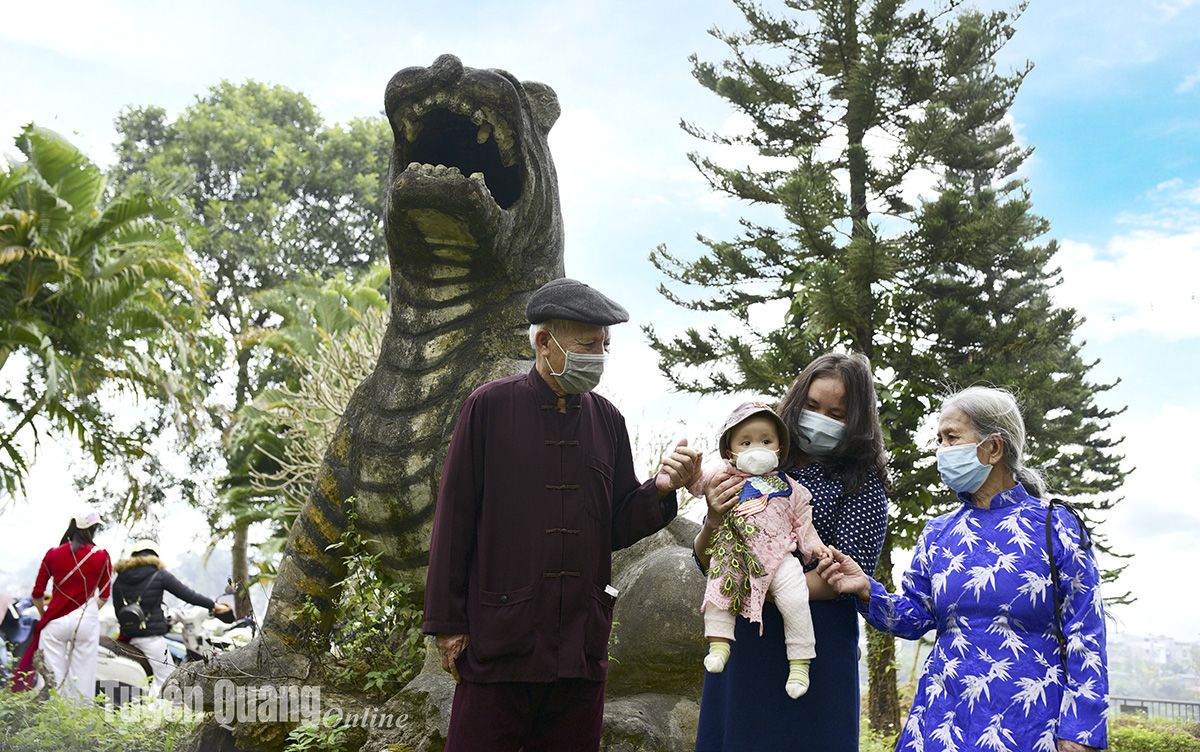 Nhiều gia đình tìm chụp ảnh với con Hổ xưa tại vườn hoa đường Chiến Thắng Sông Lô, TP Tuyên Quang.