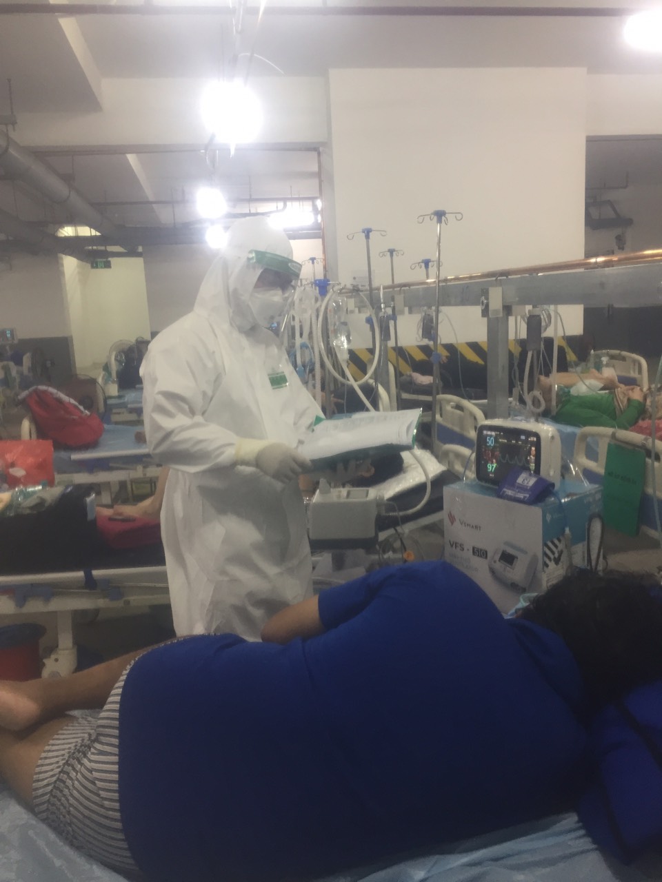 Bác sĩ Vân điều trị cho bệnh nhân Covid-19 Bệnh viện dã chiến số 10, thành phố Hồ Chí Minh