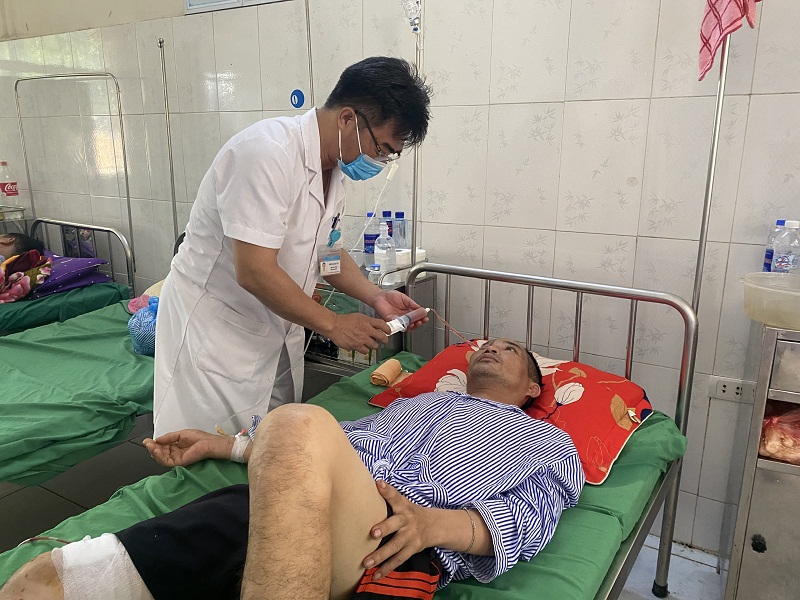 Bác sĩ Vân thăm khám cho bệnh nhân tại Trung tâm Y tế huyện Sơn Dương
