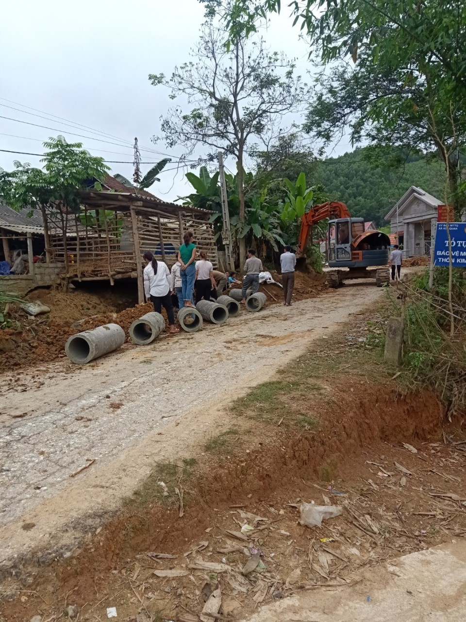 Nhân dân tham vệ sinh môi trường, đặt cống thoát nước trên địa bàn thôn