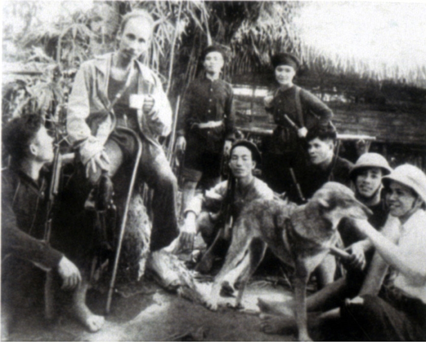 Chủ tịch Hồ Chí Minh với các nhà báo tại Điềm Mặc, Thái Nguyên, năm 1947. Ảnh: Bảo tàng Lịch sử Quốc gia Việt Nam
