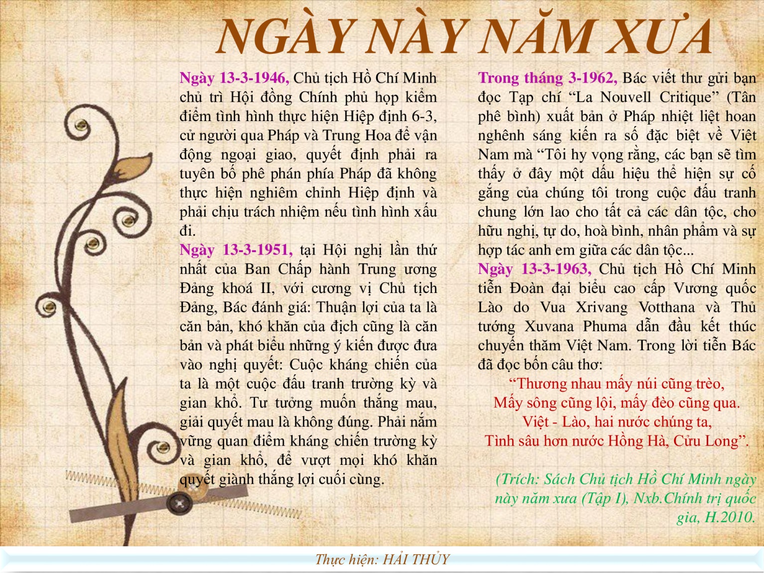 Ngày 13-3-1960, Bác lên thăm Thái Nguyên, Người đã gặp gỡ và nói chuyện với nhân dân thị xã, thăm công trường xây dựng Khu Gang thép Thái Nguyên, Nhà máy điện Cao Ngạn, một số trường học và Hội nghị Thanh niên xã hội chủ nghĩa toàn Khu tự trị Việt Bắc.