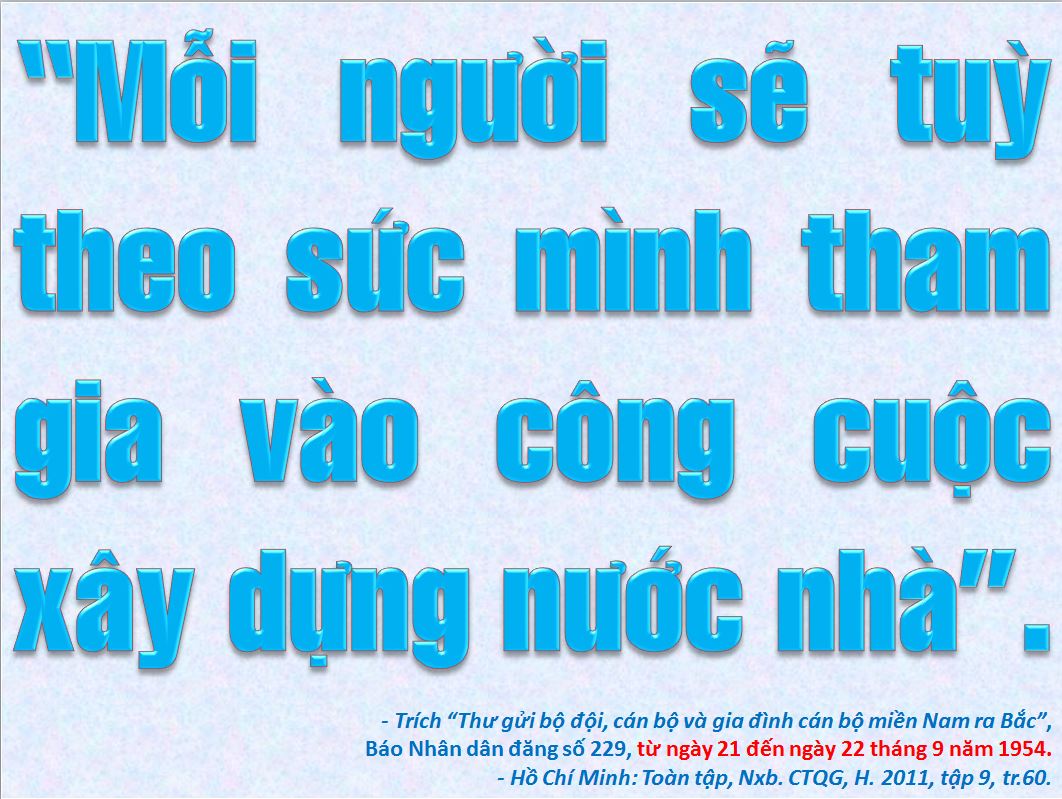 Sau Hiệp định Geneve được ký kết, đất nước ta tạm thời chia cắt làm hai miền. Miền Bắc được giải phóng, từng bước khôi phục kinh tế, phát triển văn hóa xã hội, tiến lên chủ nghĩa xã hội; miền Nam tiếp tục cuộc cách mạng giải phóng để thống nhất đất nước. Để kịp thời động viên bộ đội, cán bộ và các gia đình từ miền Nam ruột thịt tập kết ra Bắc trong những ngày đầu còn nhiều bỡ ngỡ, Bác Hồ đã gửi thư thăm hỏi, động viên và căn dặn: