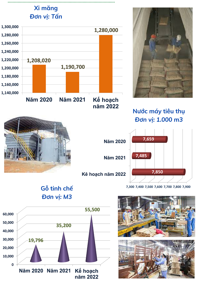 Năm 2021 trong phát triển sản xuất một số sản phẩm công nghiệp chủ yếu của tỉnh đã đạt được kết quả và kế hoạch thực hiện năm 2022 cụ thể: