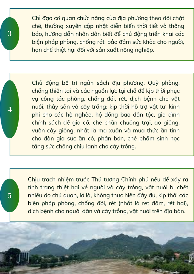 Ngày 26/01/2025, Thủ tướng Chính phủ ban hành Công điện số 07/CĐ-TTg về việc chủ động phòng, chống rét đậm, rét hại kéo dài, với một số nhiệm vụ sau: