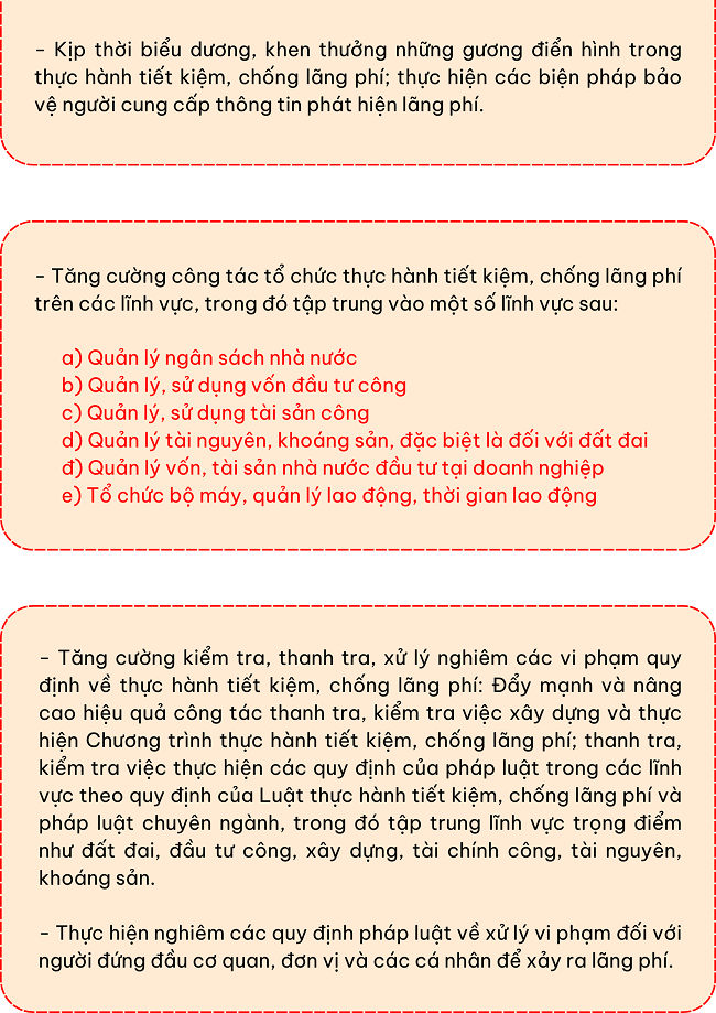 Ngày 01/12/2024, Thủ tướng Chính phủ ban hành Công điện 125/CĐ-TTg về việc đẩy mạnh thực hành tiết kiệm, chống lãng phí với một số nhiệm vụ, giải pháp như sau:
