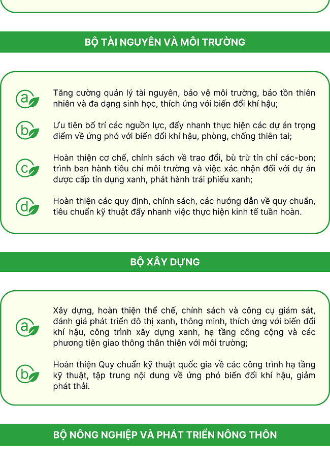 Ngày 09/12/2024 Thủ tướng Chính phủ ban hành Chỉ thị 44/CT-TTg triển khai một số nhiệm vụ, giải pháp trọng tâm nhằm đẩy mạnh thực hiện Chiến lược quốc gia về tăng trưởng xanh giai đoạn 2021 - 2030, tầm nhìn 2050 như sau: