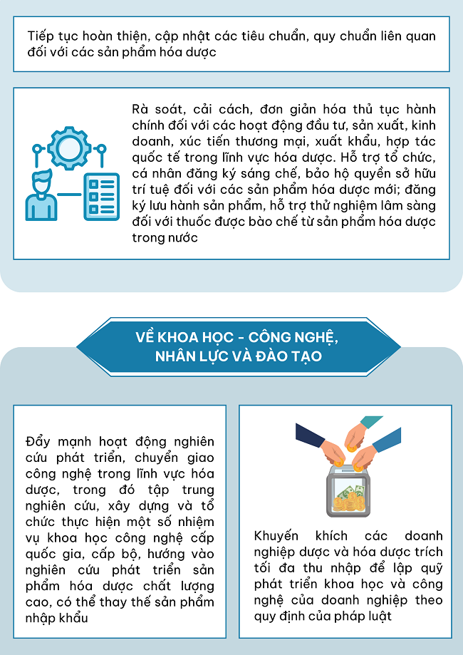 Ngày 13/02/2025, Thủ tướng Chính phủ đã ban hành Quyết định số 270/QĐ-TTg phê duyệt Chương trình phát triển công nghiệp hóa dược đến năm 2030, tầm nhìn đến năm 2045, với một số nhiệm vụ và giải pháp như sau: