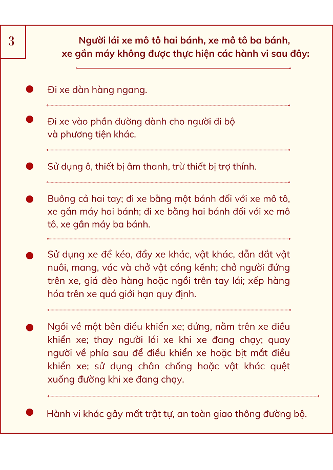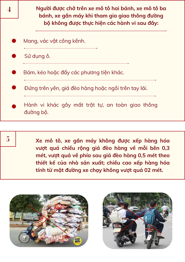 Một số quy định đối với người lái xe, người được chở, hàng hóa xếp trên xe mô tô, xe gắn máy lưu thông trên đường bộ