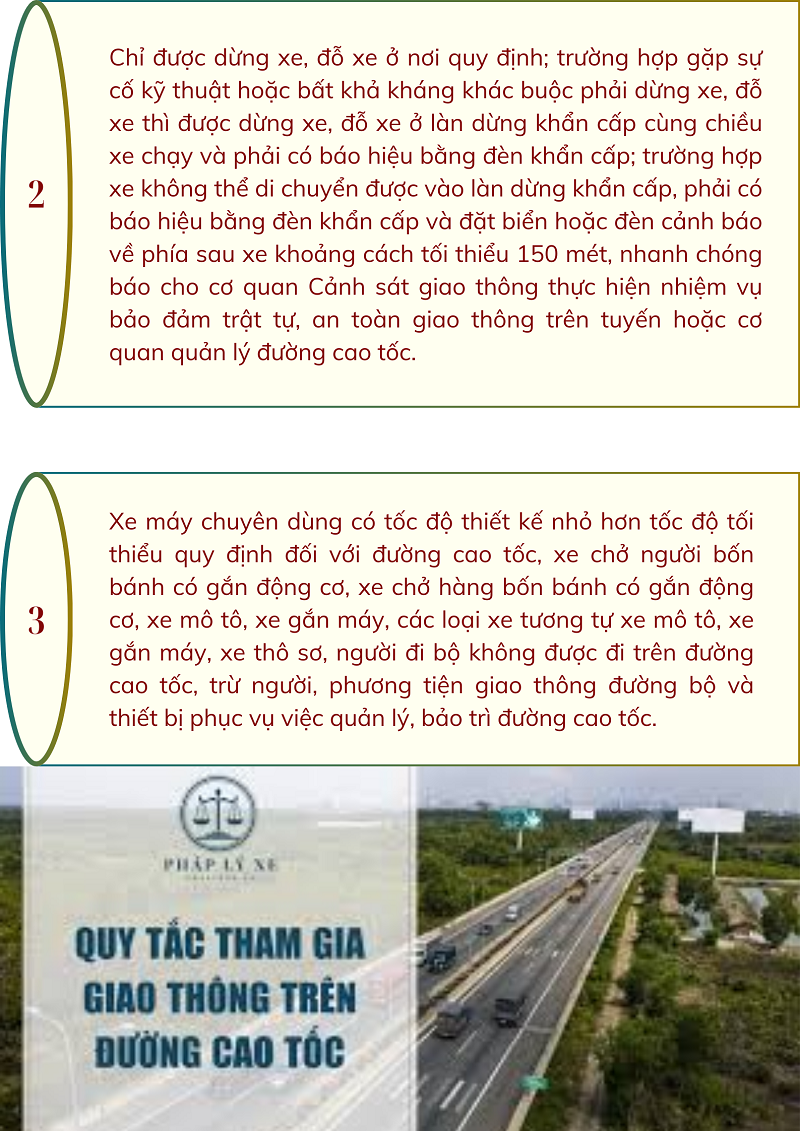 Ngày 27/6/2024, Quốc hội ban hành Luật số 36/2024/QH15 về Luật trật tự, an toàn giao thông đường bộ, với quy tắc tham gia giao thông trên đường cao tốc tại điều 25 như sau:
