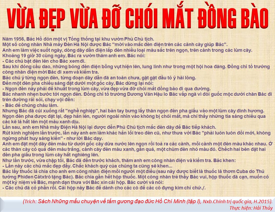 Trong quá trình lãnh đạo cách mạng Việt Nam, Chủ tịch Hồ Chí Minh luôn quan tâm chăm lo xây dựng đội ngũ cán bộ, đảng viên-những người cách mạng suốt đời phấn đấu vì mục tiêu độc lập dân tộc gắn liền với chủ nghĩa xã hội.