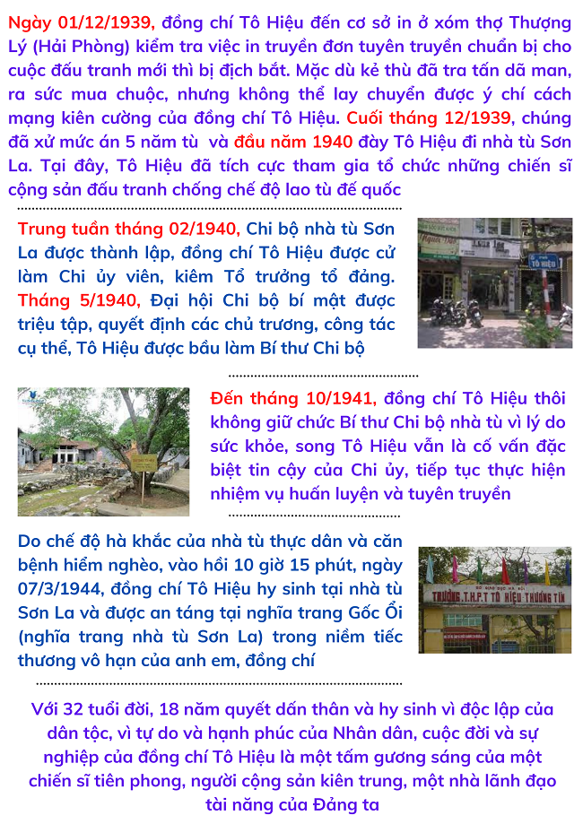 Quá trình hoạt động cách mạng của đồng chí Tô Hiệu