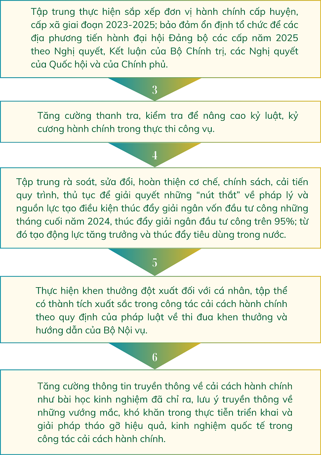 Ngày 06/8/2024, Văn phòng Chính phủ ban hành Thông báo số 363/TB-VPCP về kết luận của Ban chỉ đạo cải cách hành chính Chính phủ, với quan điểm, mục tiêu, nhiệm vụ, giải pháp trong thời gian tới như sau: