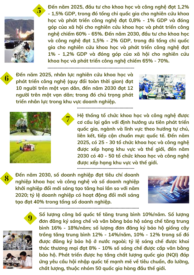 Ngày 11/5/2022, Thủ tướng Chính phủ ban hành Quyết định số 569/QĐ-TTg về Chiến lược phát triển khoa học, công nghệ và đổi mới sáng tạo đến năm 2030 với quan điểm, mục tiêu, nhiệm vụ và giải pháp như sau: