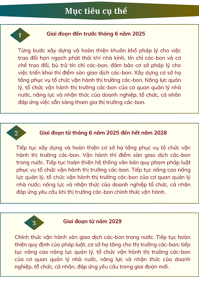 Quan điểm, nguyên tắc, mục tiêu, lộ trình triển khai thành lập và phát triển thị trường các-bon tại Việt Nam