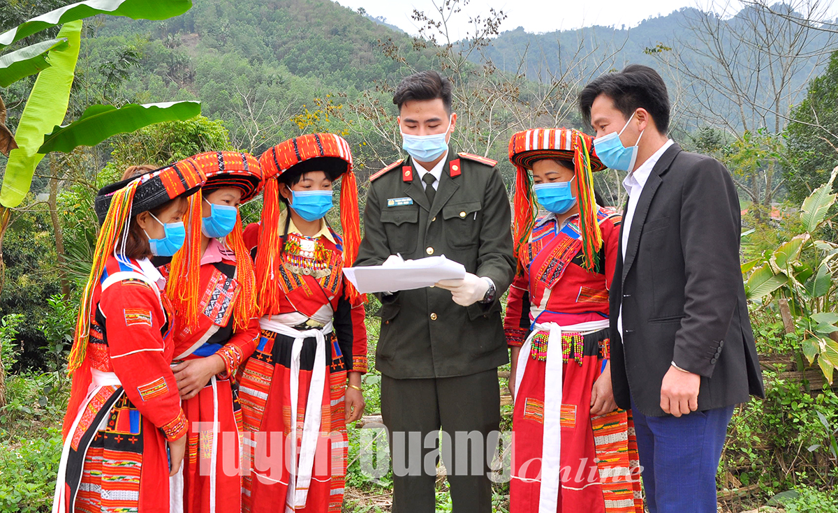 Công an huyện Lâm Bình tuyên truyền về phòng, chống dịch bệnh Covid-19 cho nhân dân thôn Thượng Minh, xã Hồng Quang.