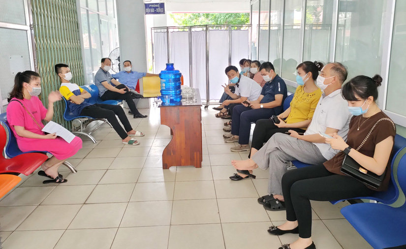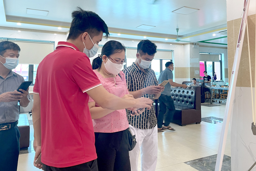 Các đối tượng đi tiêm được hướng dẫn cài đặt App sổ sức khoẻ điện tử.