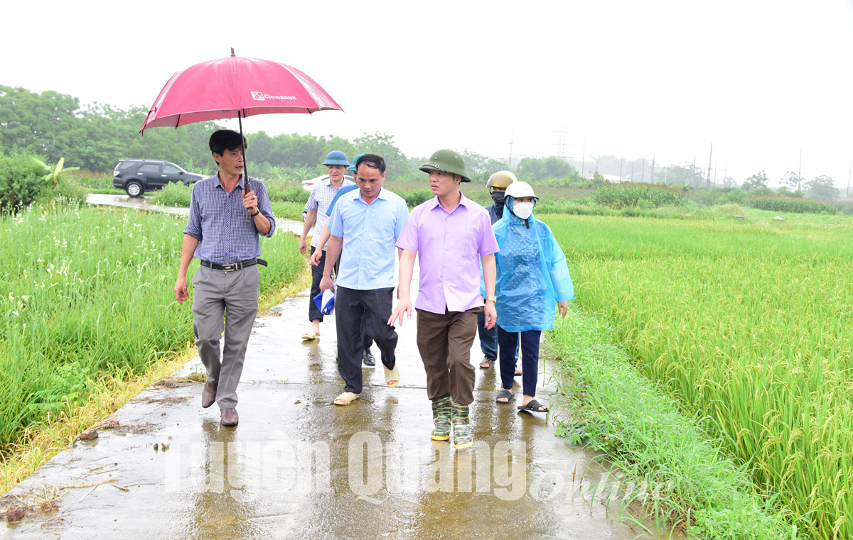 Lãnh đạo Sở Nông nghiệp và phát triển nông thôn nắm tình hình sản xuất của người dân.