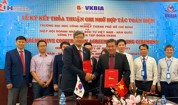 Lễ ký kết hợp tác toàn diện cho chương trình liên kết giáo dục và đào tạo, phát triển nguồn nhân lực trình độ cao, tay nghề cao. (Ảnh: VKBIA)