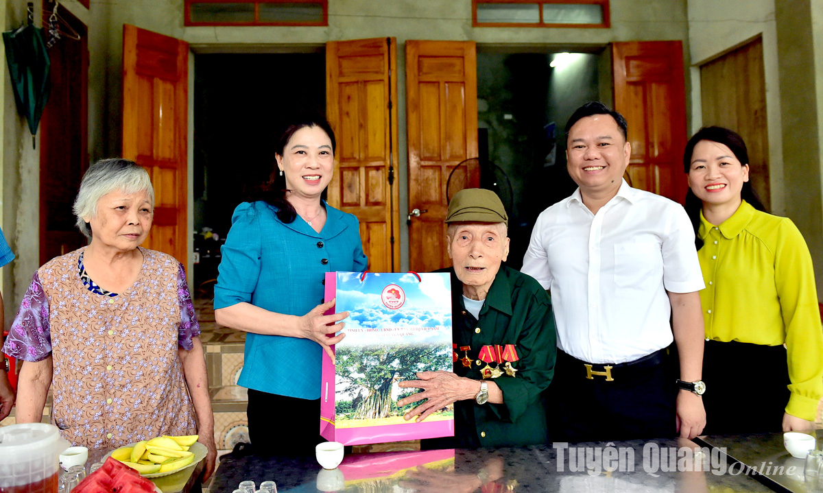 Nhân dịp kỷ niệm 77 năm Ngày Thương binh-Liệt sỹ, sáng 24-7, đồng chí Lê Thị Kim Dung, Phó Bí thư Thường trực Tỉnh ủy, Chủ tịch HĐND tỉnh đã thăm, tặng quà ông Hoàng Văn Hợi, sinh năm 1957, dân tộc Kinh, thương binh tỷ lệ 41%, tổ 3, phường Ỷ La và bà Nguyễn Thị Loan, sinh năm 1945, dân tộc Kinh, vợ Liệt sĩ Hoàng Văn Hảo, tổ 3, phường Ỷ La (TP Tuyên Quang).