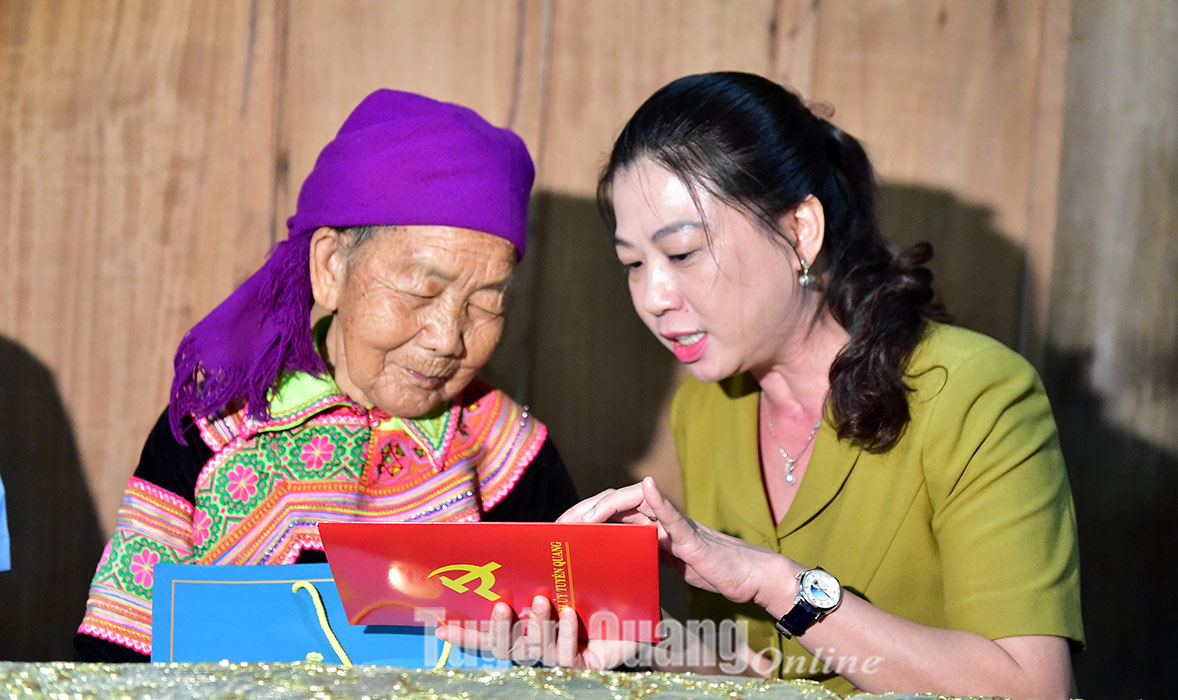 Đồng chí Lê Thị Kim Dung, Phó Bí thư Thường trực Tỉnh ủy, Chủ tịch HĐND tỉnh tặng quà người cao tuổi tại huyện Yên Sơn