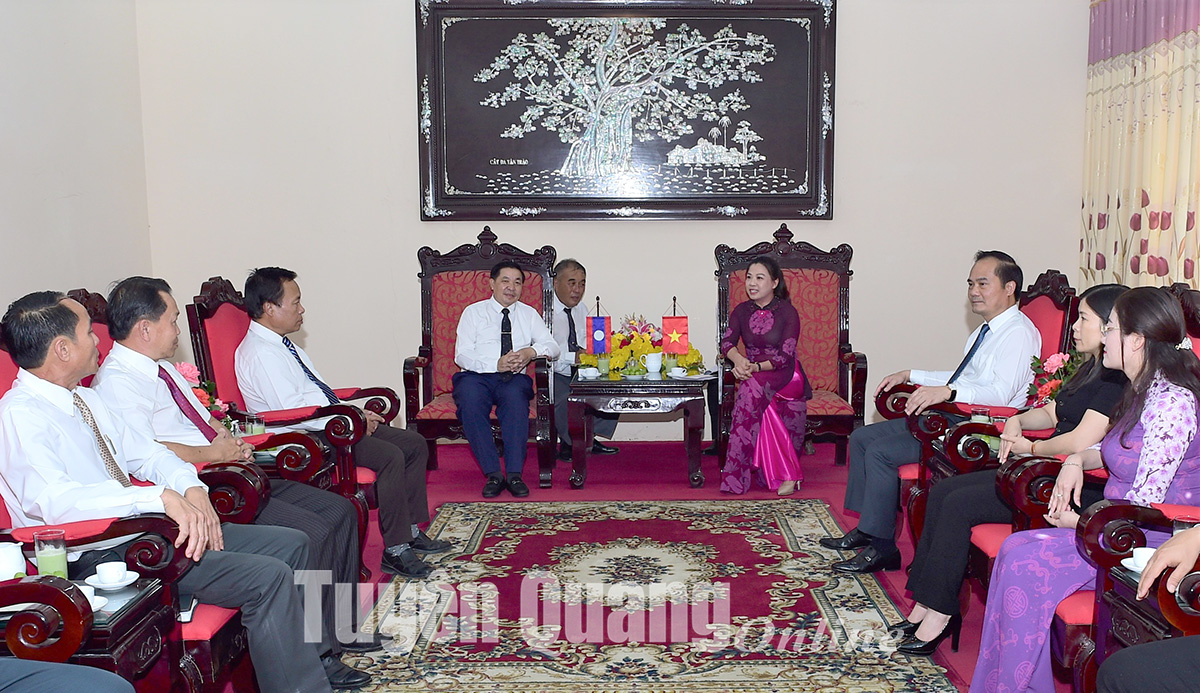 Chiều 28-6, đồng chí Lê Thị Kim Dung, Phó Bí thư Thường trực Tỉnh ủy, Chủ tịch HĐND tỉnh đã tiếp Đoàn đại biểu tỉnh Xiêng Khoảng (Lào) do đồng chí Sỉ-vi-lay Sẻng-cha-lơn, Tỉnh ủy viên, Phó tỉnh trưởng tỉnh Xiêng Khoảng làm Trưởng đoàn thăm, làm việc, dự Hội nghị tổng kết Biên bản hợp tác giữa tỉnh Tuyên Quang và tỉnh Xiêng Khoảng giai đoạn 2016-2020 và ký kết Biên bản hợp tác giai đoạn 2021-2025 tại tỉnh Tuyên Quang.