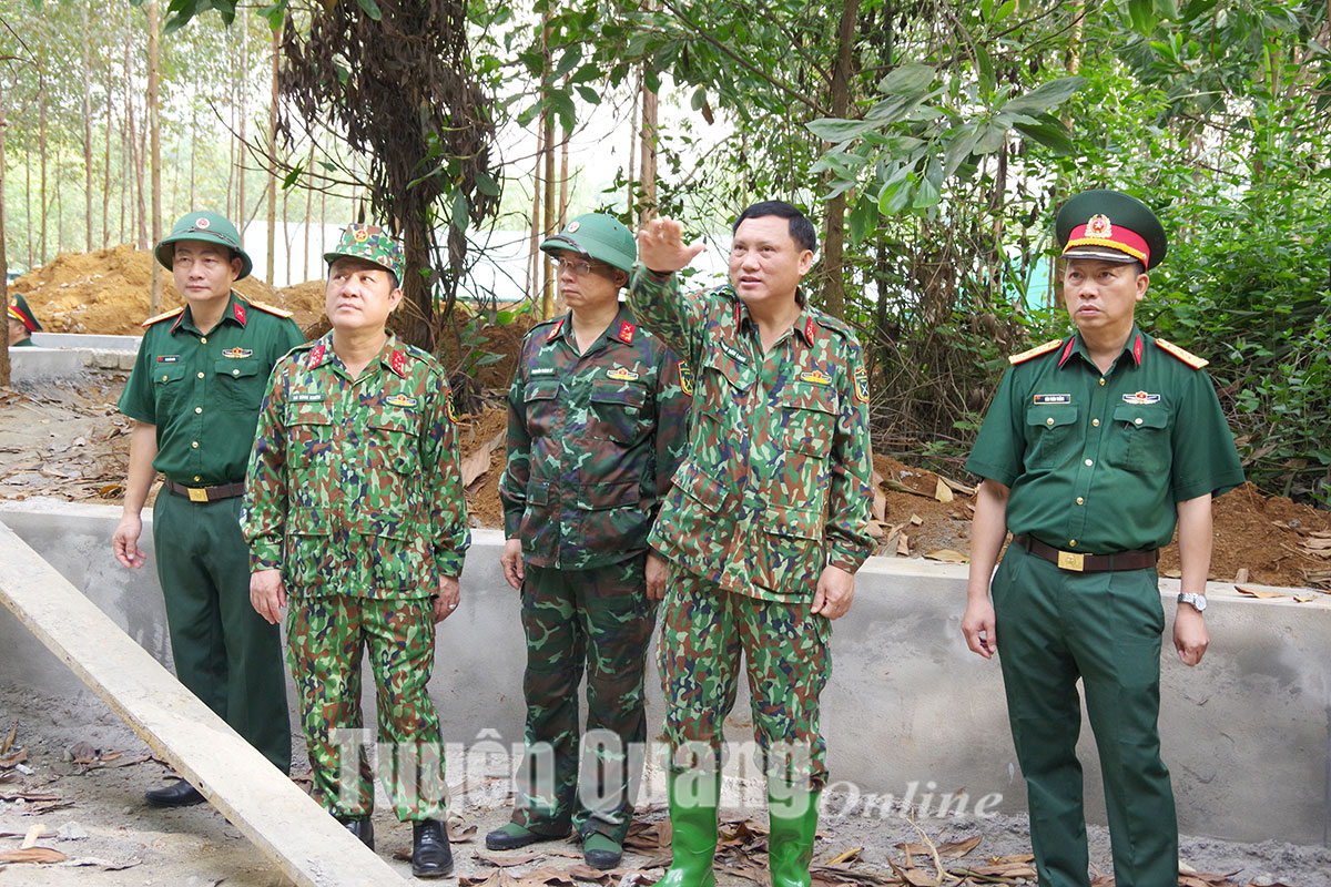 Các đồng chí lãnh đạo Bộ CHQS tỉnh kiểm tra xây dựng Sở Chỉ huy giả định.