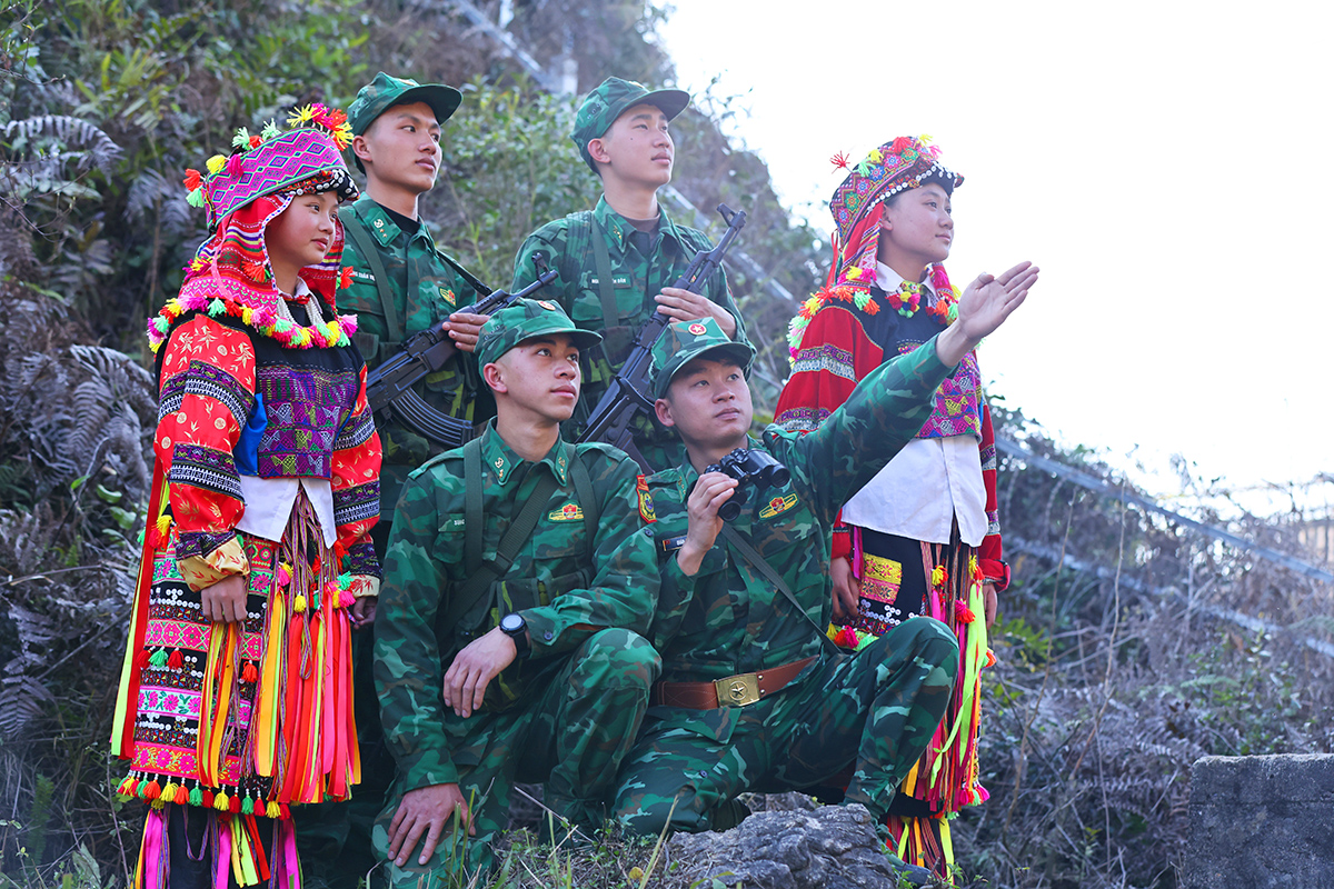 Chiến sĩ Đồn Biên phòng Lũng Cú cùng nhân dân trên địa bàn tuần tra, bảo vệ đường biên, cột mốc_Ảnh: TTXVN